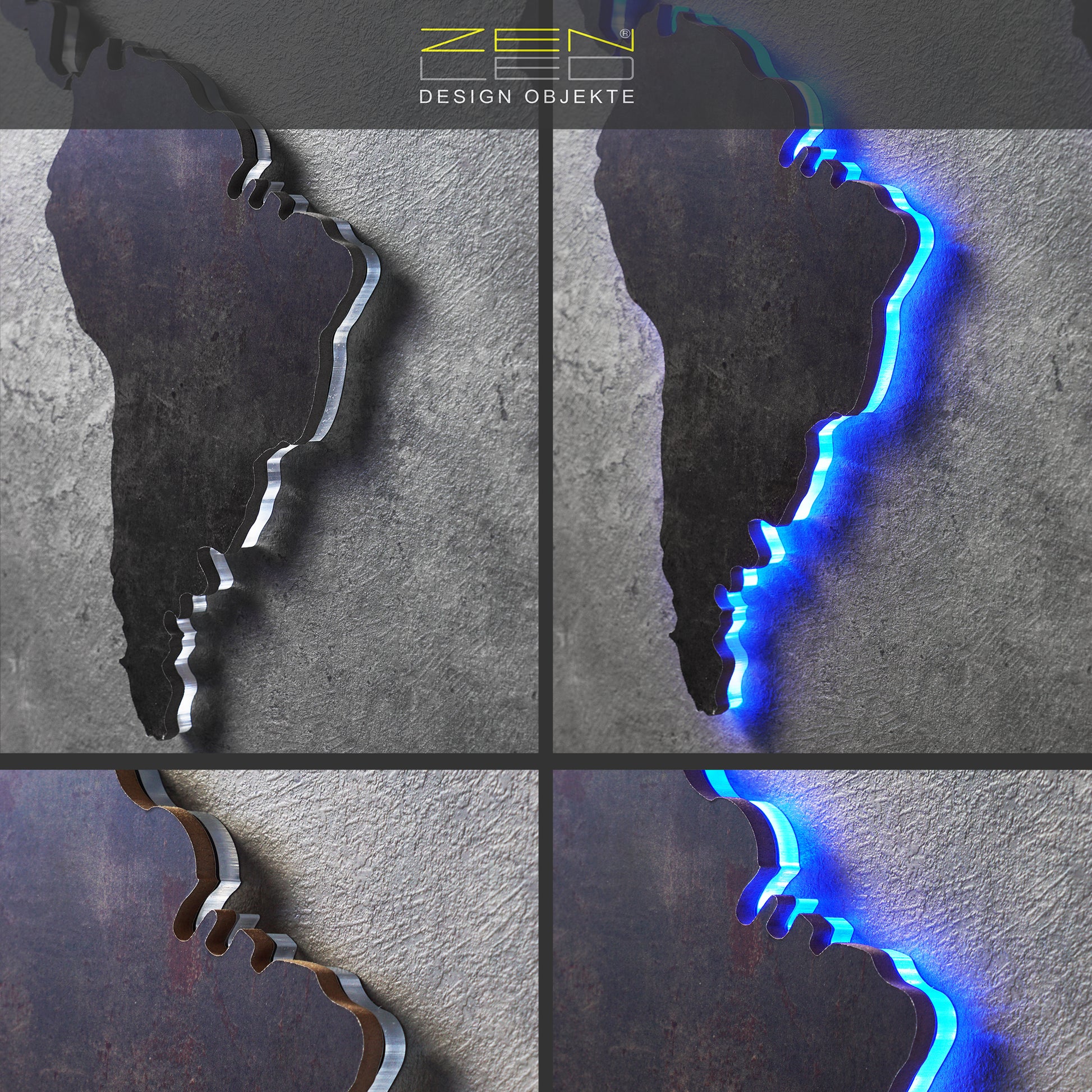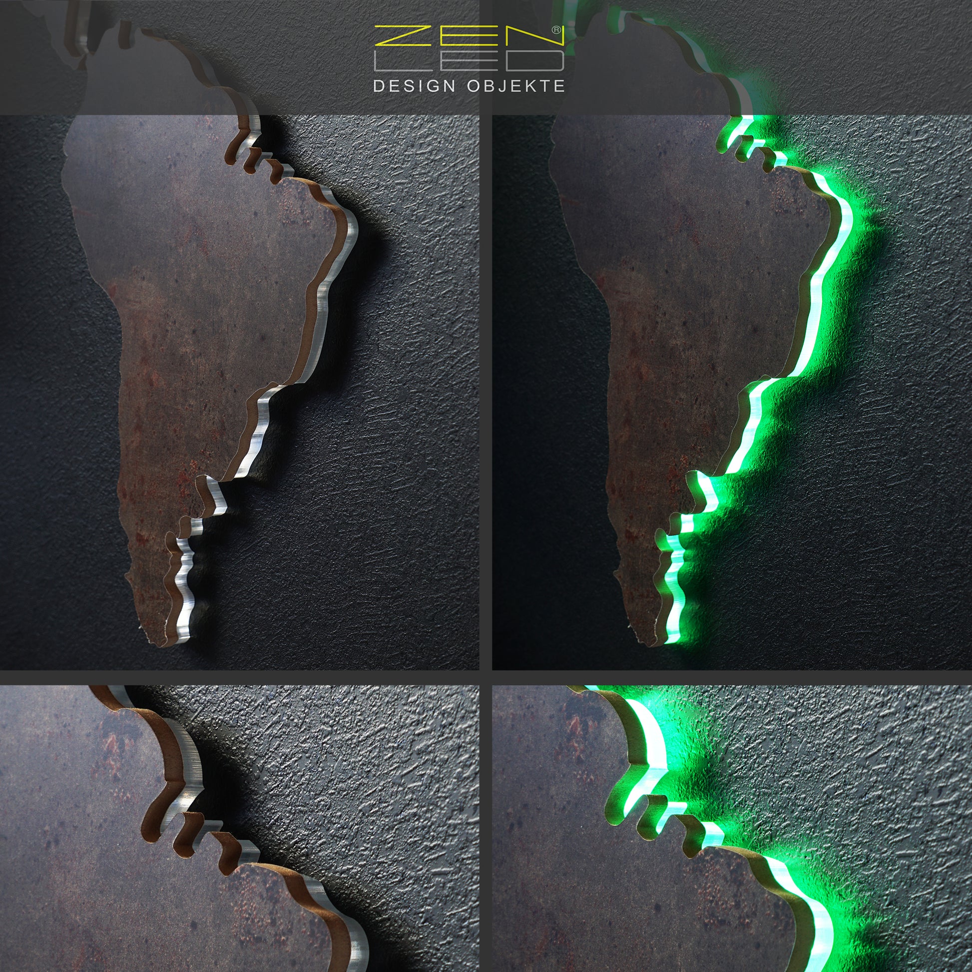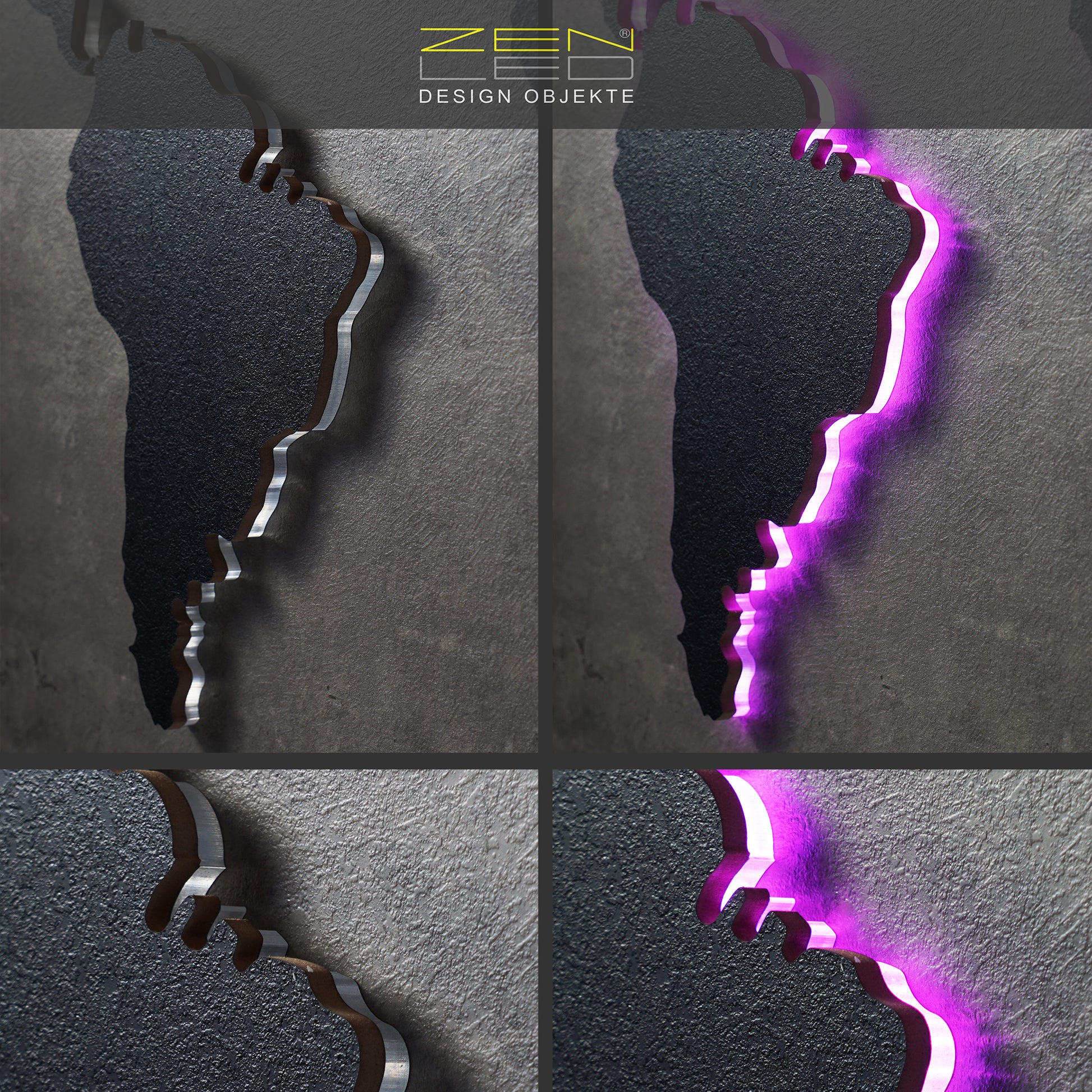 ABSOLUTER HINGUCKER - Beleuchtetes Wandbild in 110x57cm mit einer Holzfurnier-Grundplatte und Kontinenten/Länderausschnitten wahlweise in den Varianten-Serien mit NATURSTEIN-Optiken in Granit und Beton-Maserungen mit unterschiedlichen Farbkombinationen.