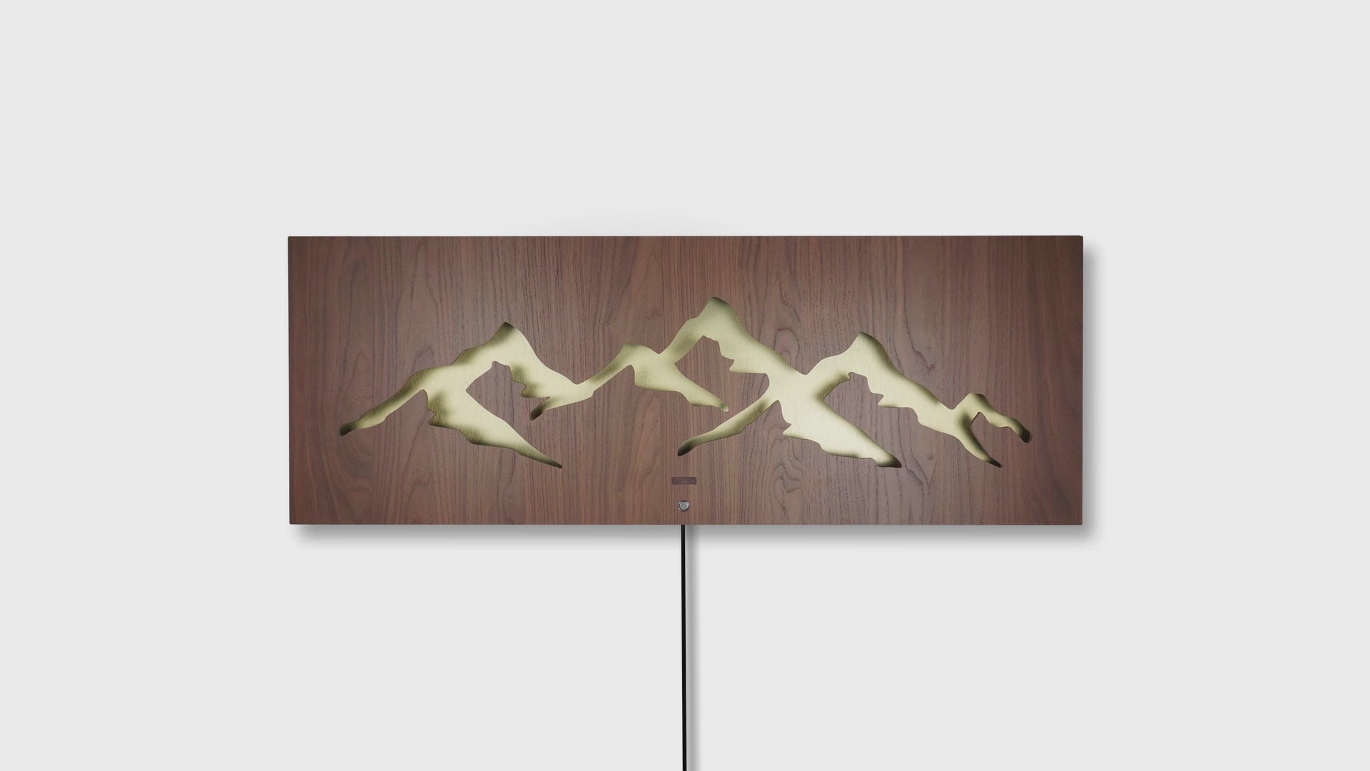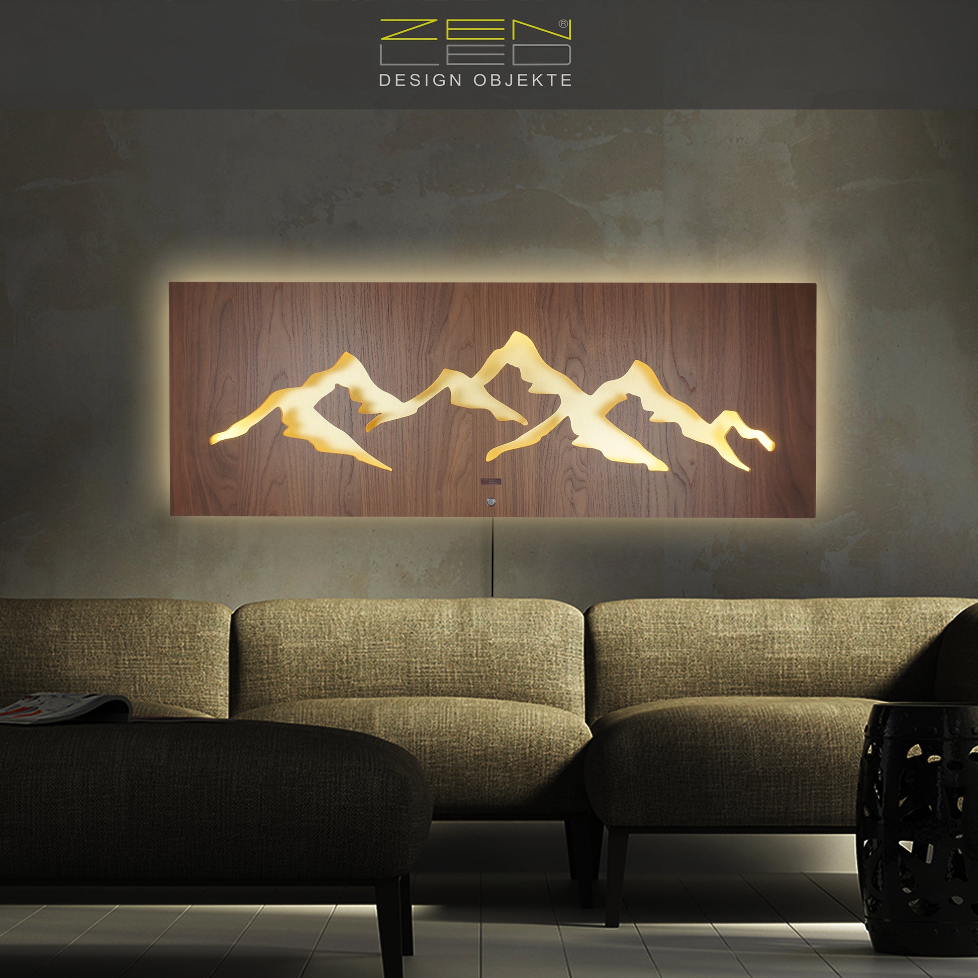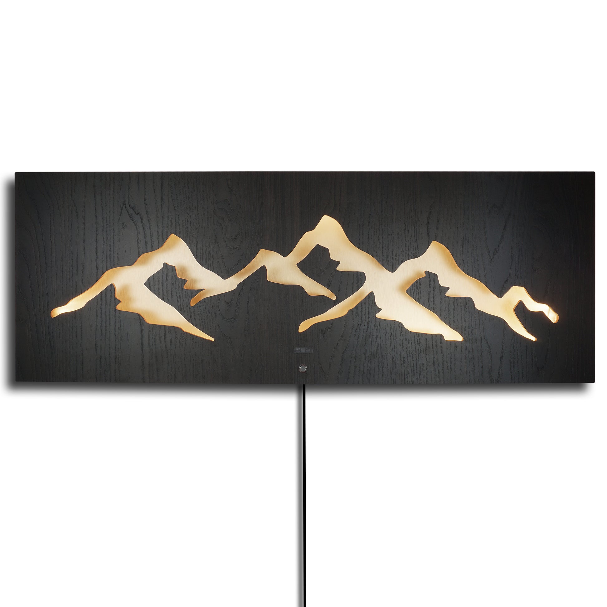 Langlebiges Gebirgsketten Holz Wandbild MONTAGNA aus unserer Wald Kollektion mit integrierter LED-Lichttechnik in der Größe: Breite 110cm x Höhe 40cm x Tiefe 5cm, Horizontal