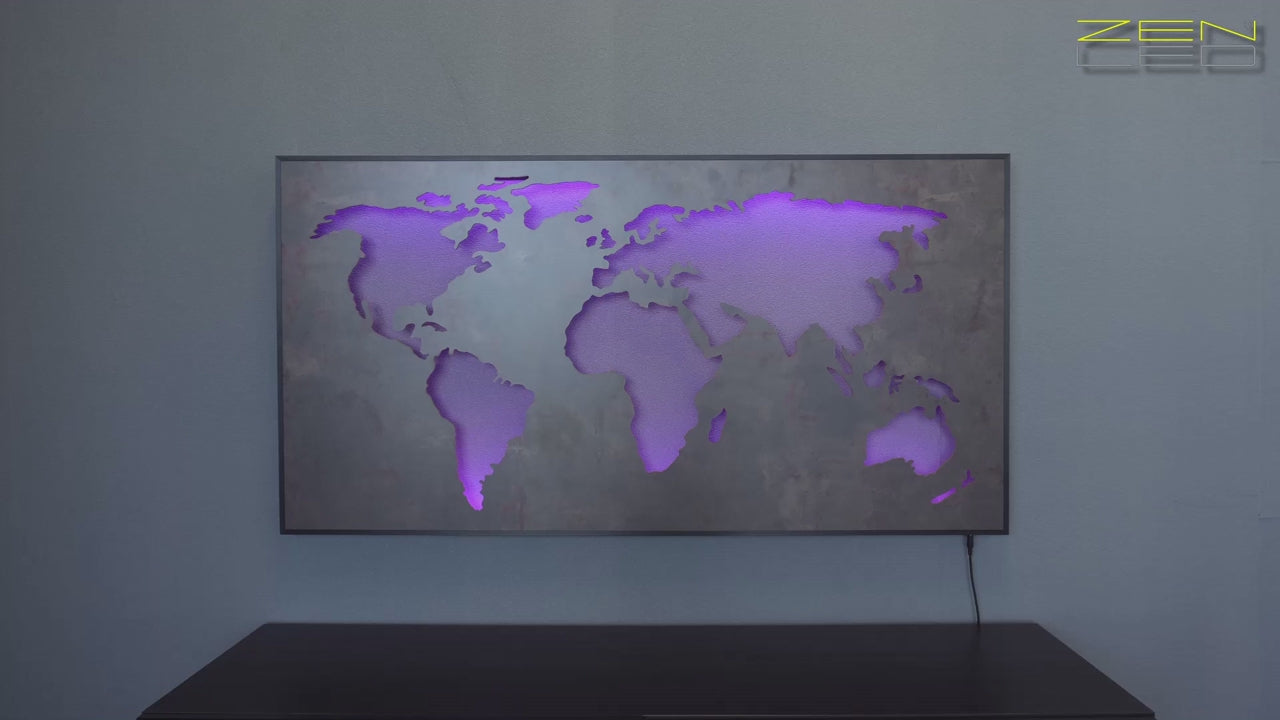 EINFACH EINZURICHTEN – Die mit einem schwarz-matten ALU-Profil berahmte LED Holz Weltkarte mit kommt komplett montiert und ist bereit zum Aufhängen and die Wand. ALLE notwendigen Zubehörteile wie Aufhänge Material, 1.8m langes Stromkabel, RGB-Fernbedienung und USB-Netzteil mit 3A / 5VDC = 15W sind im Lieferumfang enthalten.